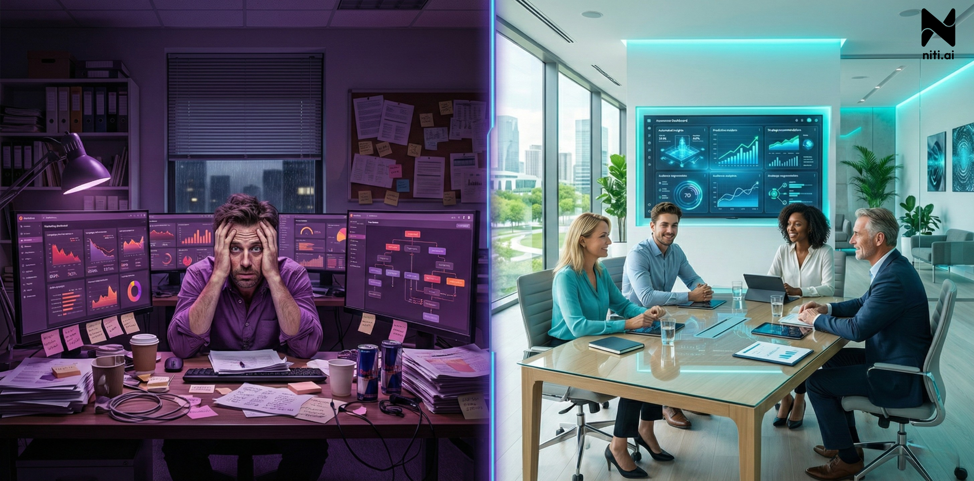 Niti AI solves all five problems for $15,000 annually—90% less than hiring while delivering 10x the strategic output.